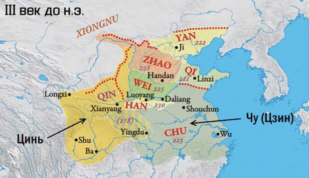 Слово «China» («Chine»), примелькавшееся на большинстве производимых в этом мире товаров и используемое во многих европейских и некоторых других языках, пришло на запад транзитом через Иран и, вероятно, Индию и происходит согласно разным гипотезам либо от названия царства и империи Цинь, либо от названия царства Цзин (более известно как Чу). Они оба существовали в течение первого тысячелетия до нашей эры, и, что самое забавное, оба имели некитайское происхождение: другие китайские царства того времени поначалу обидно обзывали их западными и южными варварами соответственно. Но от этой обиды, видимо, Цинь и Чу настолько усилились, что стали самыми могущественными, и в конце концов Цинь стала первой империей, объединившей Китай. Такие вот дела.