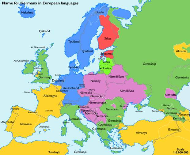 «Германией» земли нынешней Германии обозвал еще Цезарь собственной персоной. В деле подчинения Галлии сенату и народу Рима ему местами мешали, местами помогали некельтские народы, жившие на востоке – собственно, германцы. Происхождение этого слова туманно, но наверняка древних берсерков и поклонников Вотана так называли их соседи галлы, а у них это название переняли римляне. Помимо нашей страны Германию так называют в англоговорящих странах, Италии и кое-где еще.